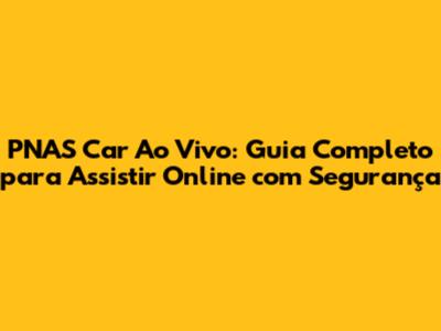 PNAS Car Ao Vivo: Assista Online Com Segurança E Sem Complicações