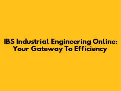 IBS Industrial Engineering Online: Your Gateway To Efficiency