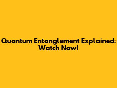 Quantum Entanglement Explained: Watch Now!