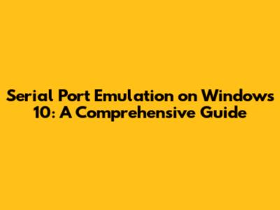 Serial Port Emulation On Windows 10: A Comprehensive Guide