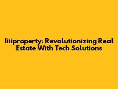 Iiiiproperty: Revolutionizing Real Estate With Tech Solutions