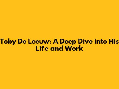 Toby De Leeuw: A Deep Dive Into His Life And Work