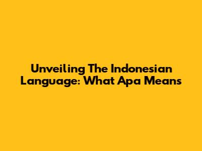 Unveiling The Indonesian Language: What 'Apa' Means