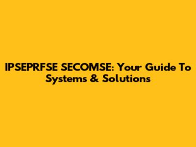 IPSEPRFSE SECOMSE: Your Guide To Systems & Solutions