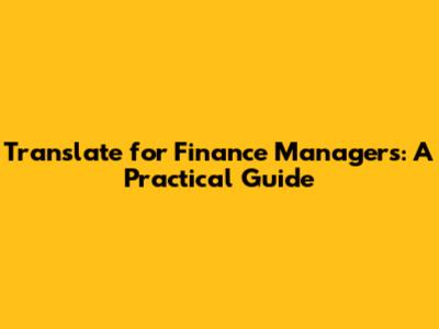 Translate For Finance Managers: A Practical Guide