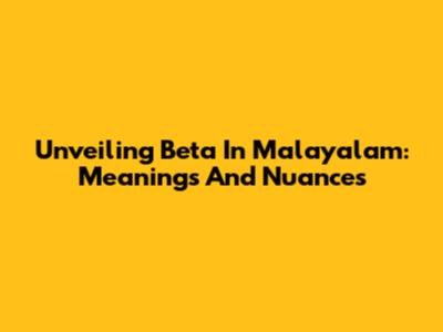 Unveiling 'Beta' In Malayalam: Meanings And Nuances