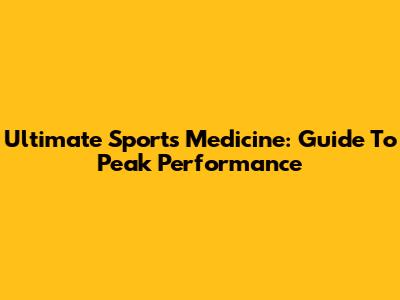 Ultimate Sports Medicine: Guide To Peak Performance