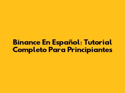 Binance En Español: Tutorial Completo Para Principiantes