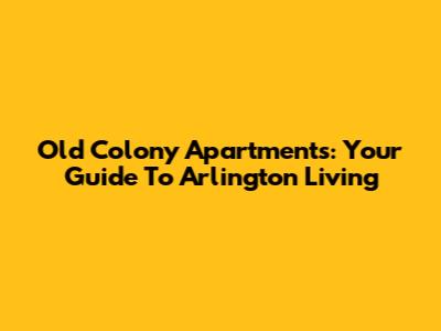 Old Colony Apartments: Your Guide To Arlington Living
