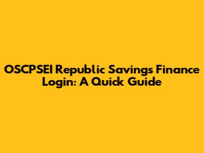 OSCPSEI Republic Savings Finance Login: A Quick Guide