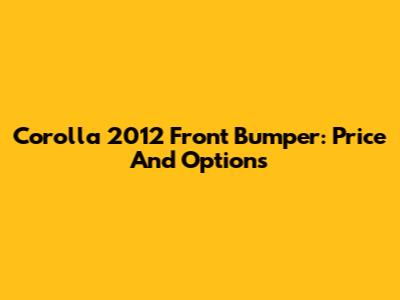 Corolla 2012 Front Bumper: Price And Options